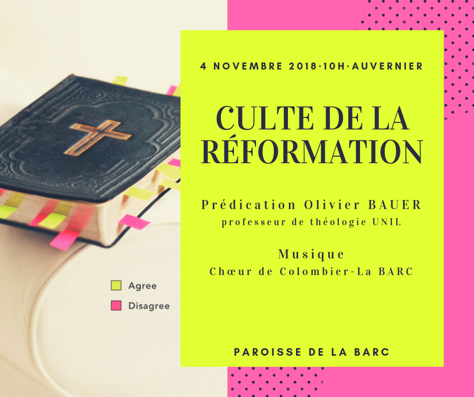 Pour le culte du dimanche de la Réformation, nous avons le plaisir d’accueillir Olivier Bauer, professeur à l’institut lémanique de théologie pratique à la facutlé de théologie et de science des religions de l’Université de Lausanne.