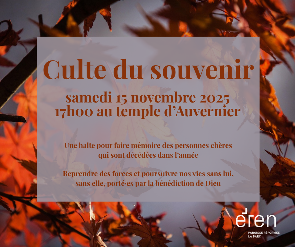 Après le décès d’un·e proche, le temps fait son œuvre. La blessure se cicatrise peu à peu, laissant la vie reprendre son cours. Les jours passent, mais le souvenir de celles et ceux que l’on a perdus demeure. Ensemble, nous vous proposons de faire une halte, de prendre le temps du souvenir et de l’hommage, de faire mémoire des personnes qui nous ont quitté·e·s, dans la reconnaissance des liens qui ont existé et sous le regard de Dieu.