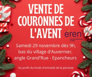Une équipe de bénévoles de la paroisse confectionne de magnifiques couronnes et vous les propose à la vente le samedi 29 novembre de 9h00 à 11h00 en bas de la Grand’Rue d’Auvernier.