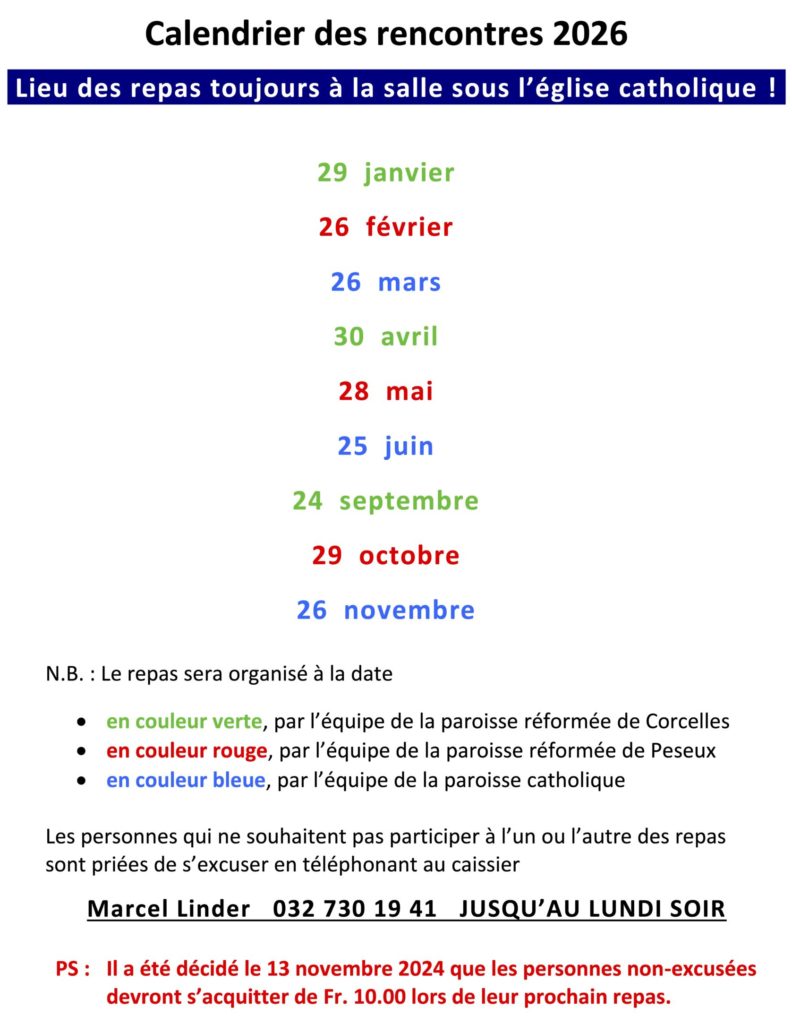 - Les rencontres en 2026 auront lieu les vendredis (14h-16h, à la Salle de paroisse de Corcelles, rue de la Cure 6)