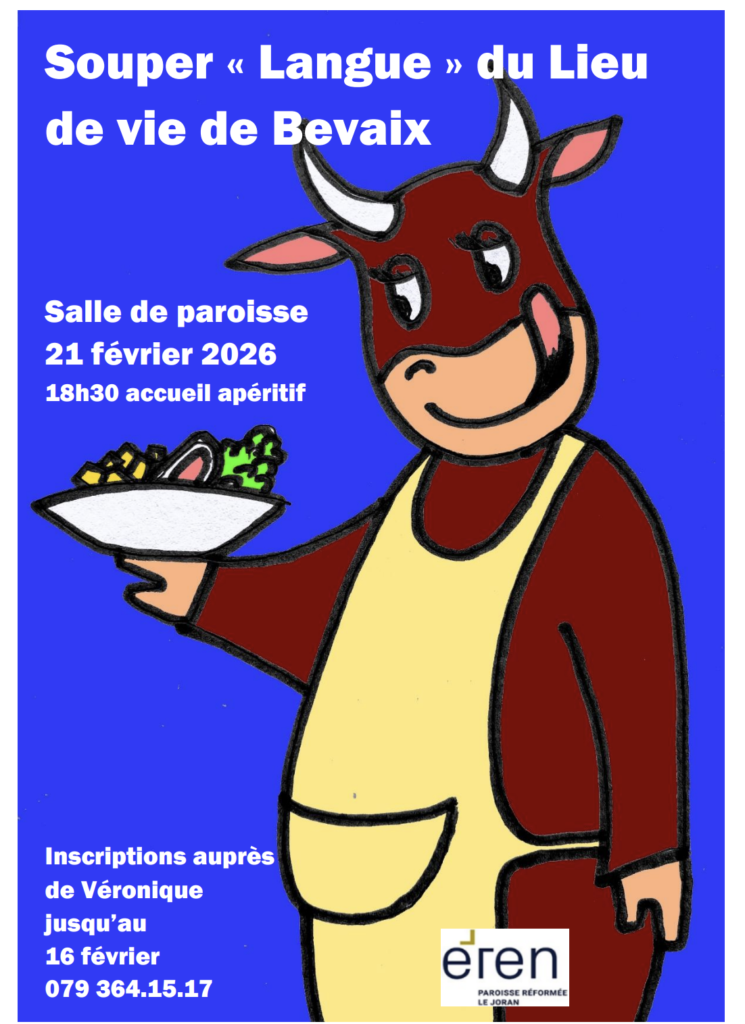 - Repas langue le samedi 21 février 2026 à la cure dès 18h30. Inscription auprès de Véronique Zbinden jusqu’au 16 février.