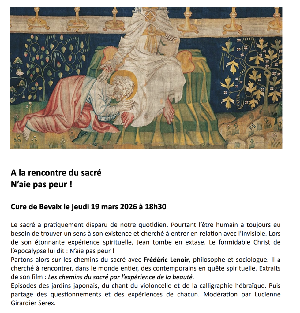 Jeudi 19 mars à 18h30 conférence sur le sacré avec Frédéric Lenoir