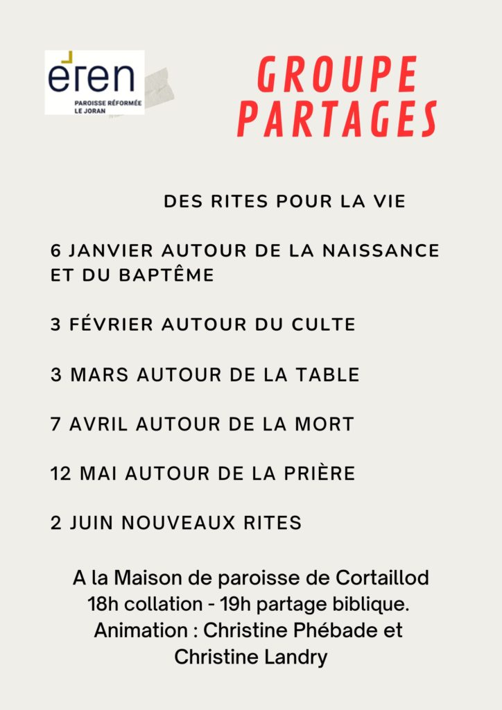 - de 19h à 20h30 Partage biblique