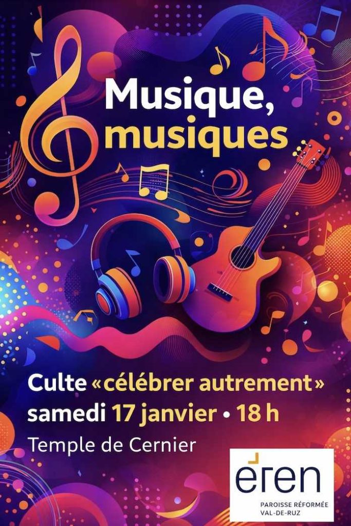 | Samedi 17 janvier | 18h00 | Culte à Cernier, Isabelle Hervé et Christophe Allemann |